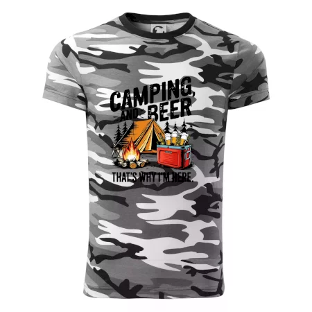 Tričko střední gramáže v barvách camouflage. Střih s bočními švy. Lem průkrčníku ze žebrového úpletu s přídavkem 5 % elastanu. Vnitřní část zadního průkrčníku začištěna páskou v barvě camouflage.