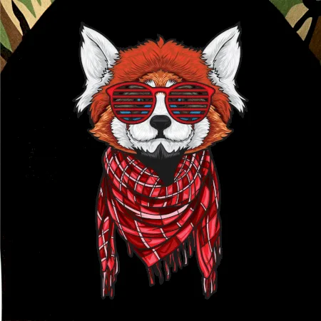 Červená panda hipster - Camouflage LS