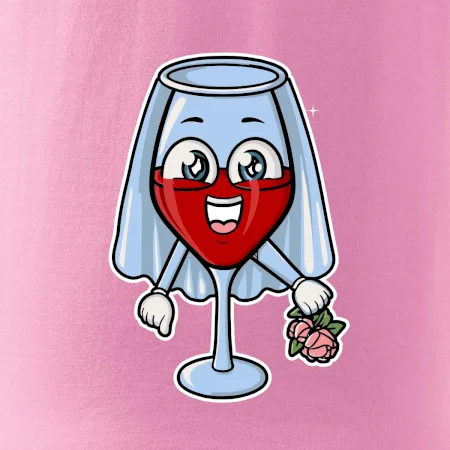 Sklenka vína se závojem pro budoucí nevěstu. Triko na rozlučku se svobodou.