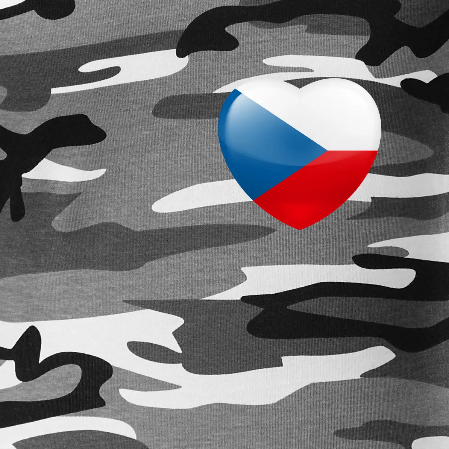 Tričko střední gramáže v barvách camouflage. Střih s bočními švy. Lem průkrčníku ze žebrového úpletu s přídavkem 5 % elastanu. Vnitřní část zadního průkrčníku začištěna páskou v barvě camouflage.