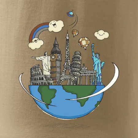 Triko pro cestovatele je vhodný dárek pro milovníky cestování. Socha Svobody, Big Ben, šikmá věž v Pise, Eiffelova věž, římské koloseum a další památky na tvém triku ukáží, že jsi pravý cestovatel. Dárek pro ty, kdo se chtějí vydat na cestu kolem světa.