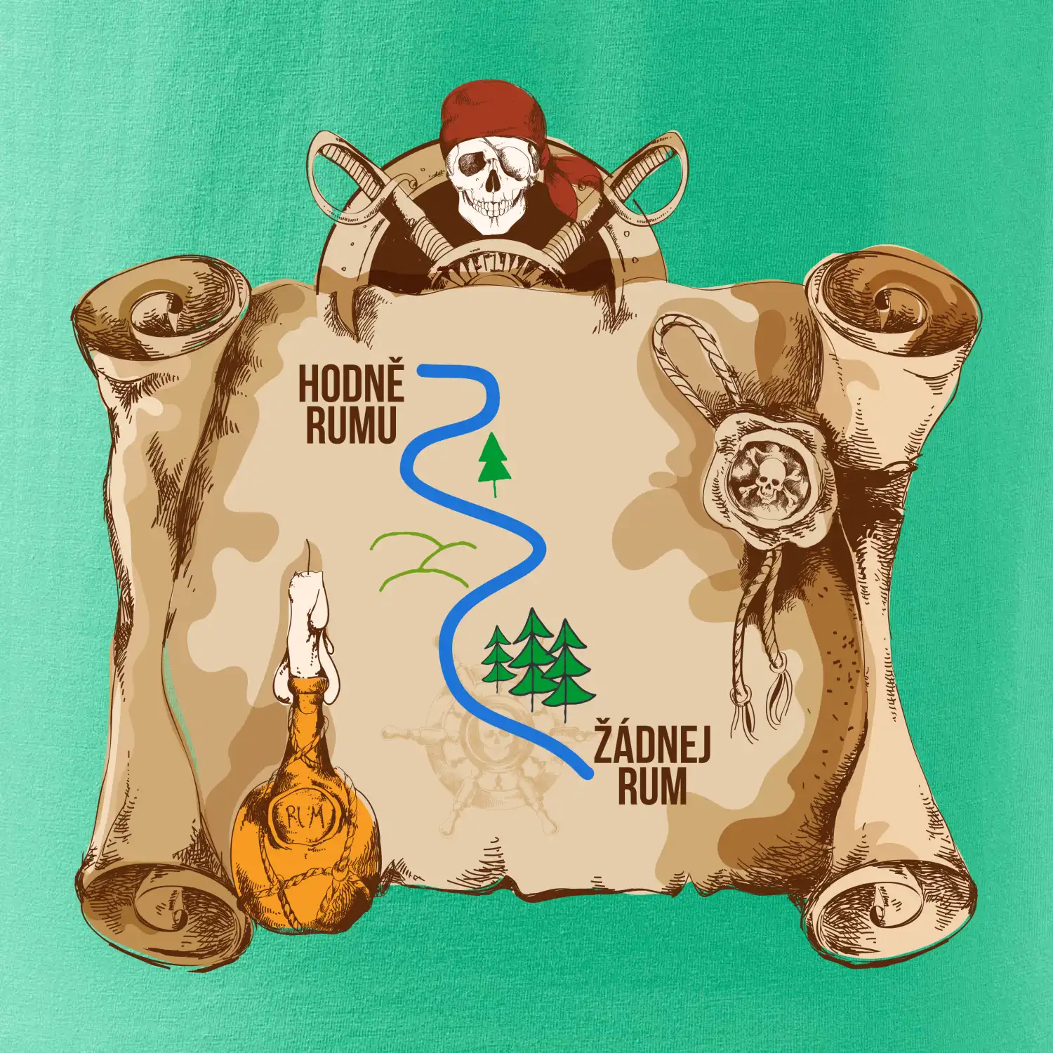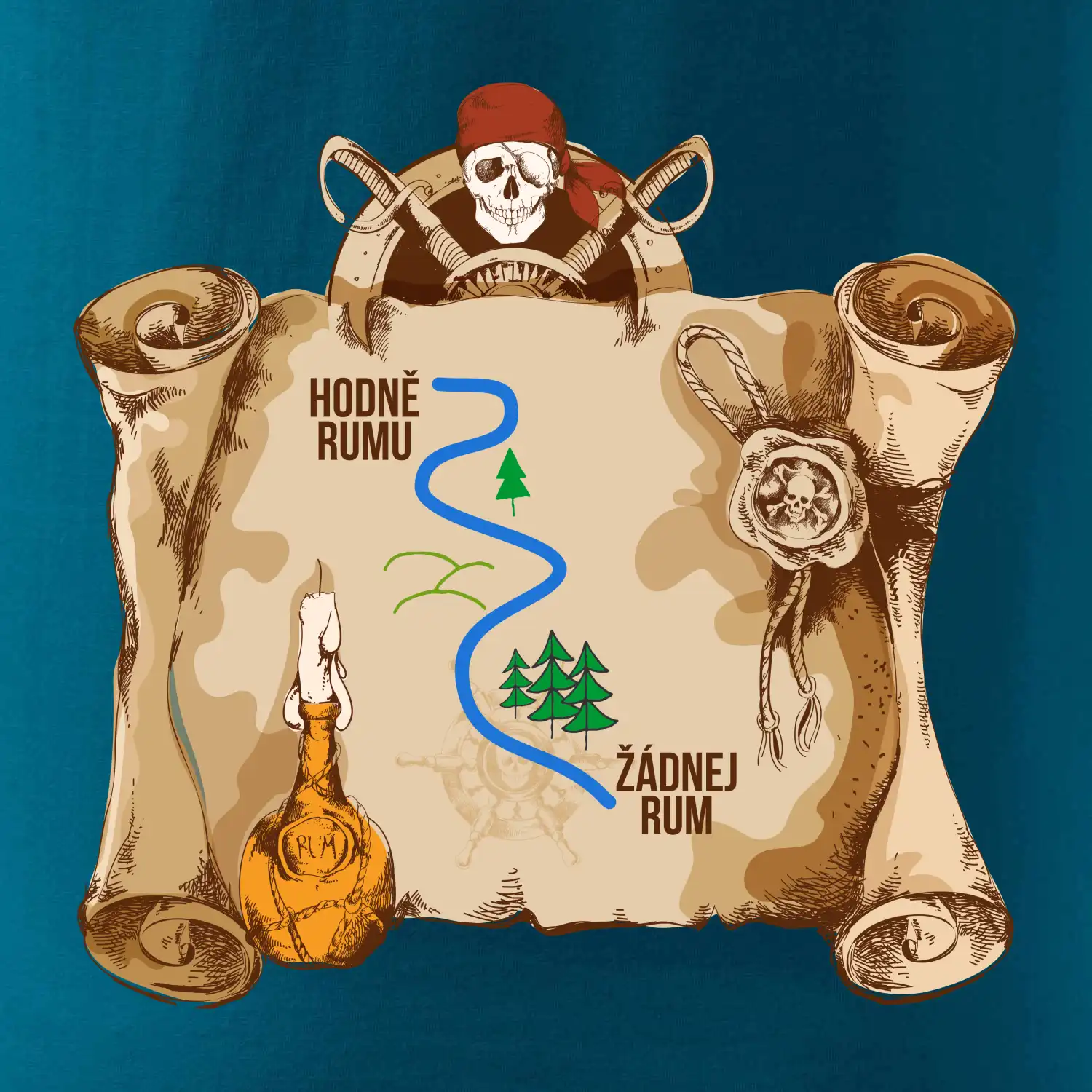 Piráti, děravá bárka, hák místo ruky a páska přes oko, ale něco tady chybí...no samozřejmě rum! Ať máš duši piráta nebo jen rád chlastáš všechno co teče, tohle tričko je skvělý dárek pro tebe nebo pro tvého kámoše. udělej si radost a ukaž všem, že rum vládne světu!