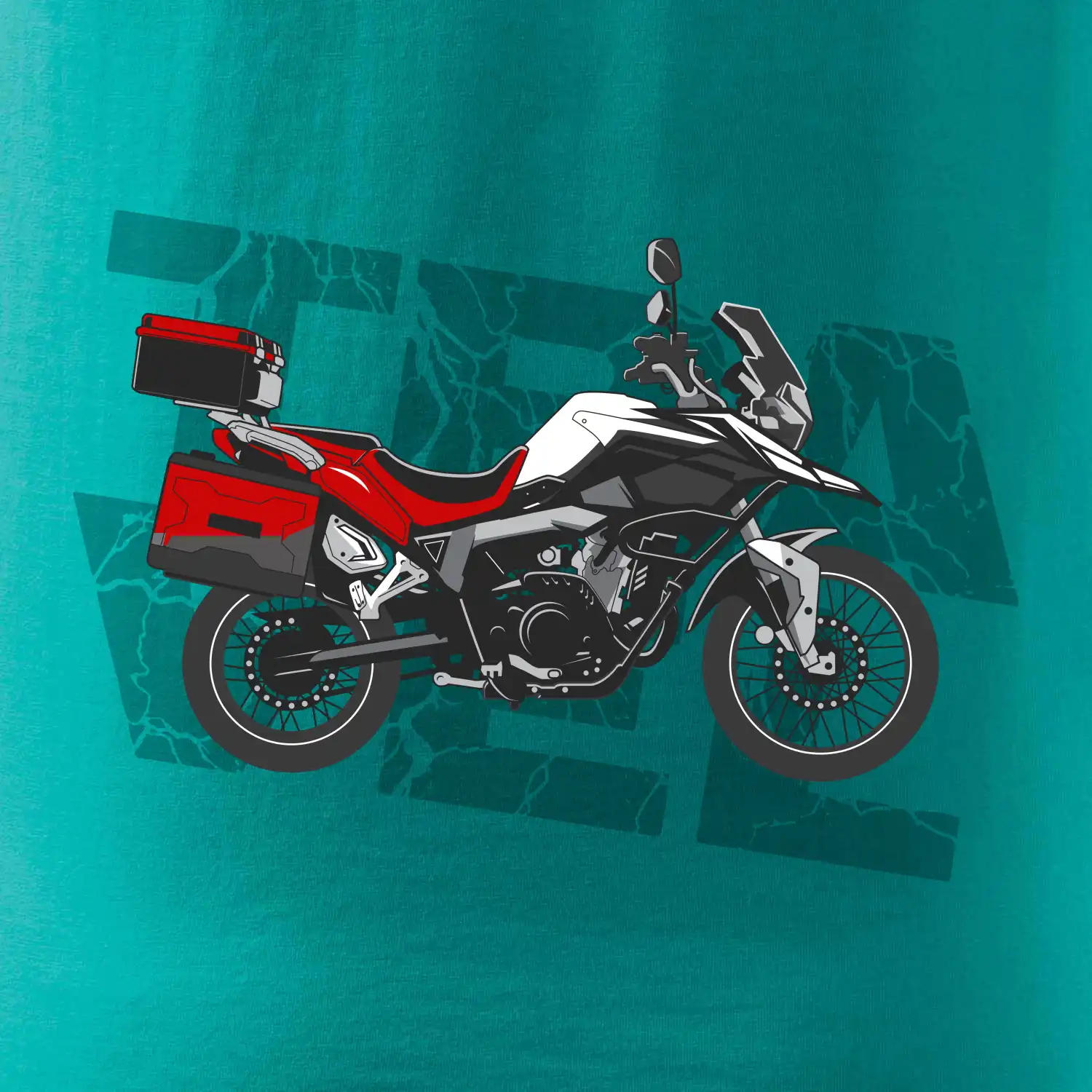 Triko pro motorkáře, na kterém je červená cestovní enduro motorka. Motorkářské triko, kde je cestovní motorka, musí mít doma každý vášnivý motorkář. Triko s motorkou je vhodný dárek pro motorkáře.