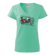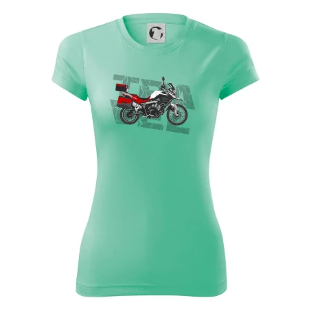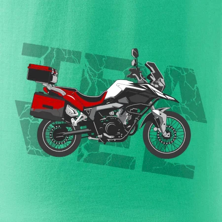 Triko pro motorkáře, na kterém je červená cestovní enduro motorka. Motorkářské triko, kde je cestovní motorka, musí mít doma každý vášnivý motorkář. Triko s motorkou je vhodný dárek pro motorkáře.