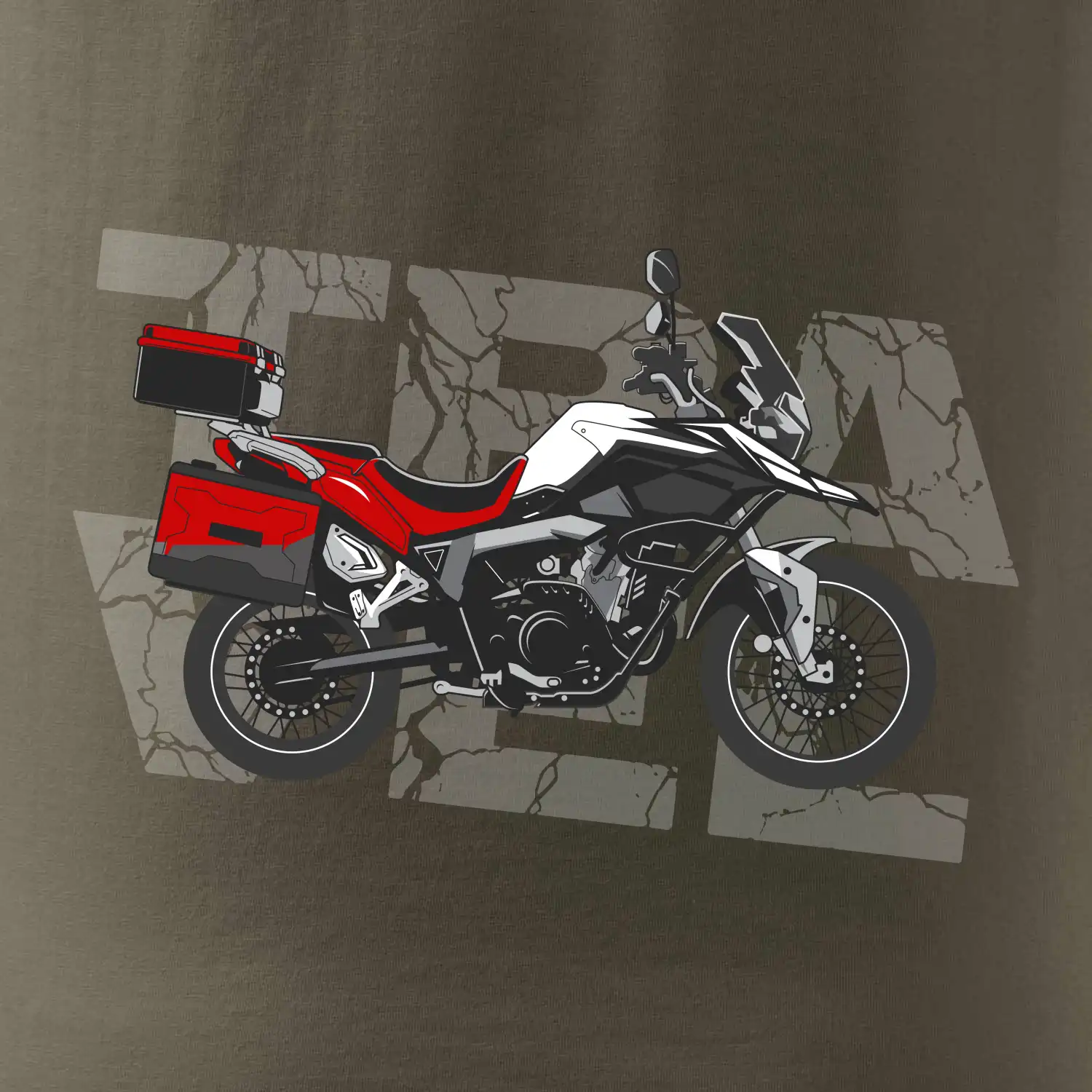 Triko pro motorkáře, na kterém je červená cestovní enduro motorka. Motorkářské triko, kde je cestovní motorka, musí mít doma každý vášnivý motorkář. Triko s motorkou je vhodný dárek pro motorkáře.