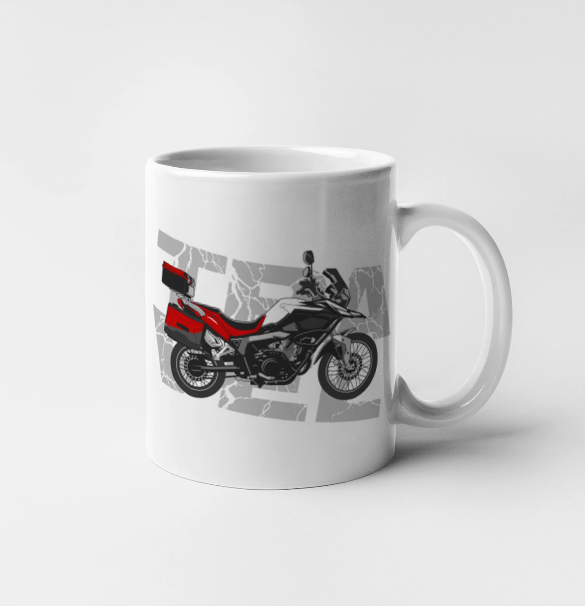 Triko pro motorkáře, na kterém je červená cestovní enduro motorka. Motorkářské triko, kde je cestovní motorka, musí mít doma každý vášnivý motorkář. Triko s motorkou je vhodný dárek pro motorkáře.