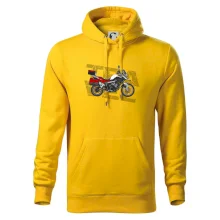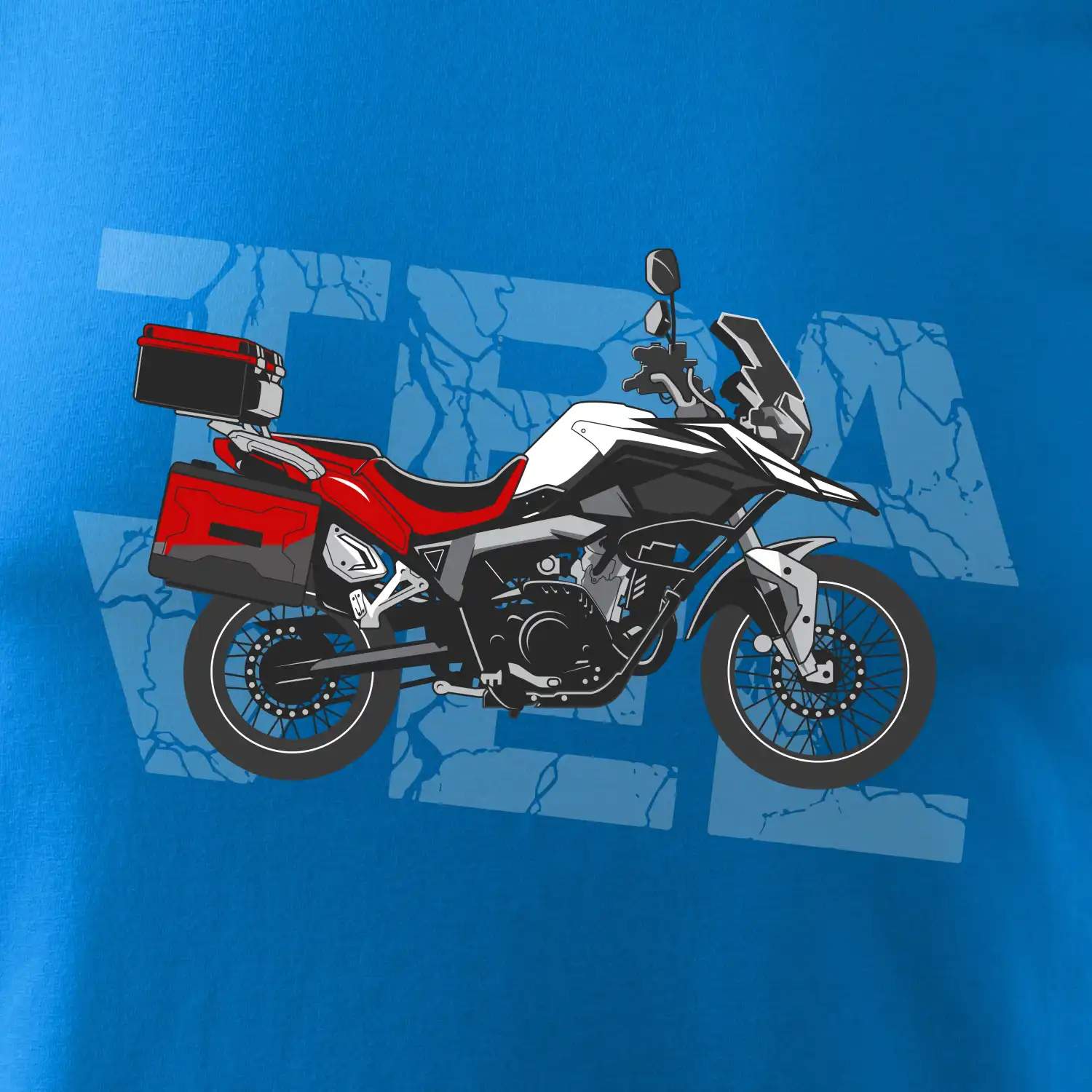 Triko pro motorkáře, na kterém je červená cestovní enduro motorka. Motorkářské triko, kde je cestovní motorka, musí mít doma každý vášnivý motorkář. Triko s motorkou je vhodný dárek pro motorkáře.