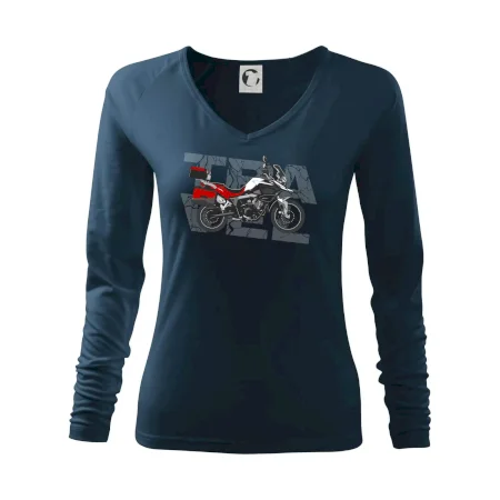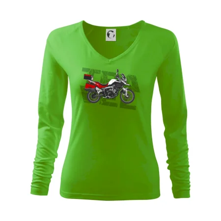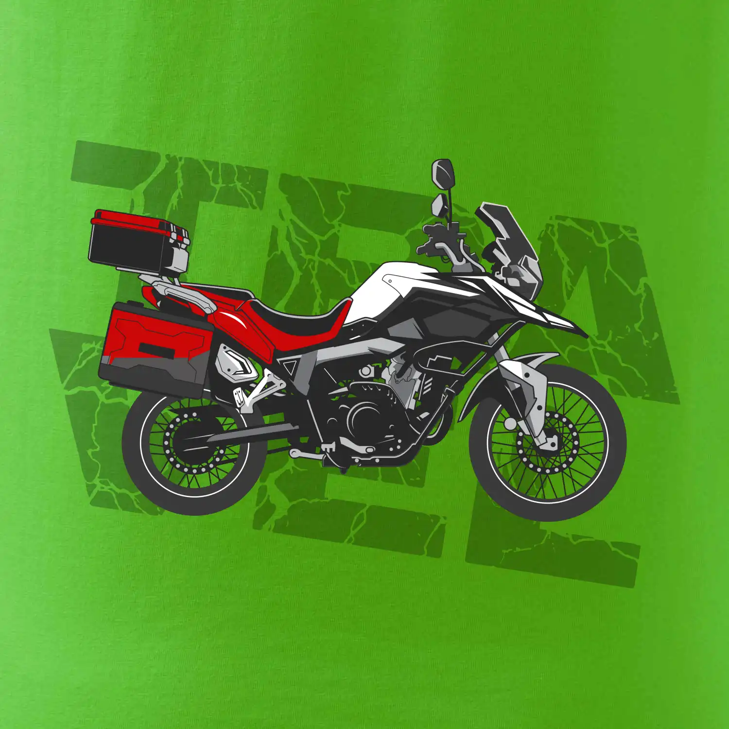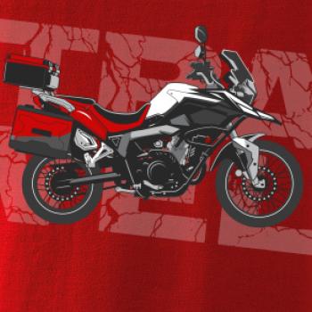 Triko pro motorkáře, na kterém je červená cestovní enduro motorka. Motorkářské triko, kde je cestovní motorka, musí mít doma každý vášnivý motorkář. Triko s motorkou je vhodný dárek pro motorkáře.