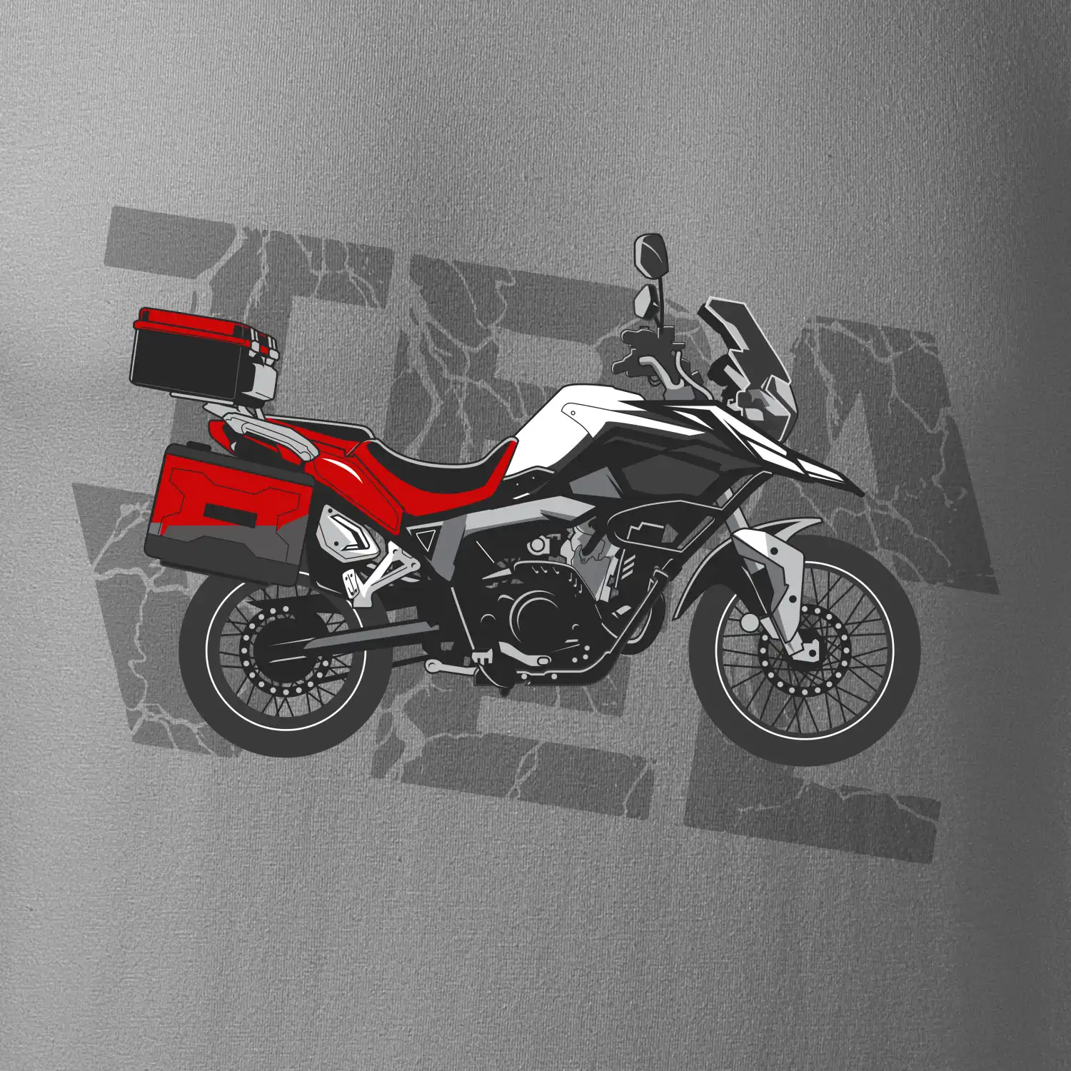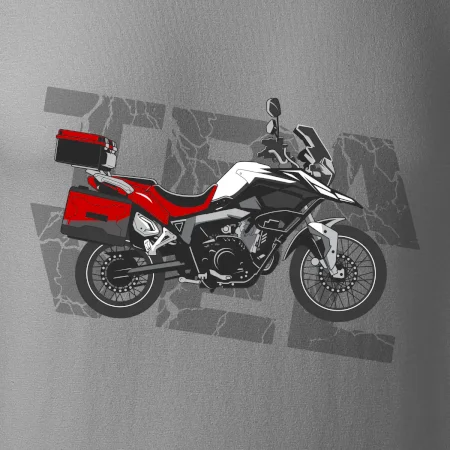 Triko pro motorkáře, na kterém je červená cestovní enduro motorka. Motorkářské triko, kde je cestovní motorka, musí mít doma každý vášnivý motorkář. Triko s motorkou je vhodný dárek pro motorkáře.