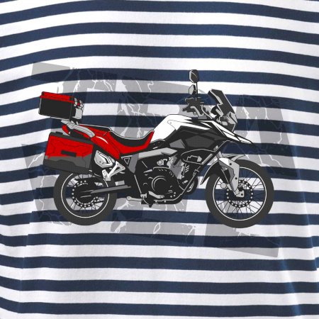 Triko pro motorkáře, na kterém je červená cestovní enduro motorka. Motorkářské triko, kde je cestovní motorka, musí mít doma každý vášnivý motorkář. Triko s motorkou je vhodný dárek pro motorkáře.