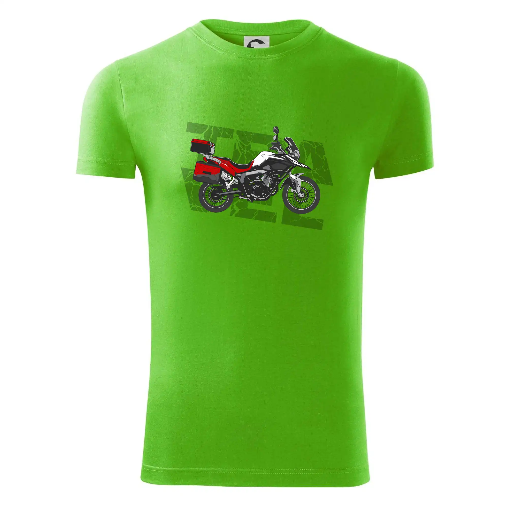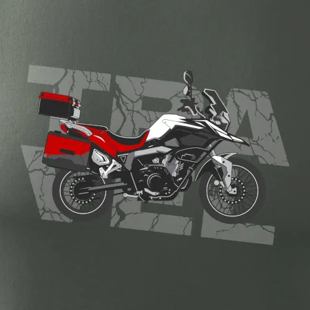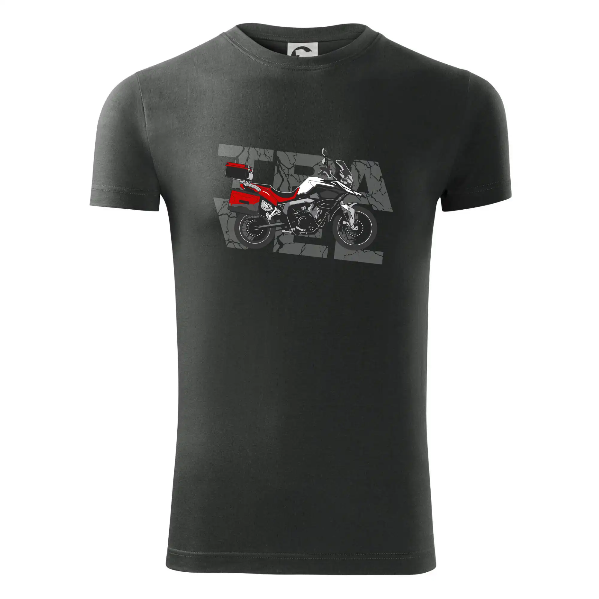 Triko pro motorkáře, na kterém je červená cestovní enduro motorka. Motorkářské triko, kde je cestovní motorka, musí mít doma každý vášnivý motorkář. Triko s motorkou je vhodný dárek pro motorkáře.