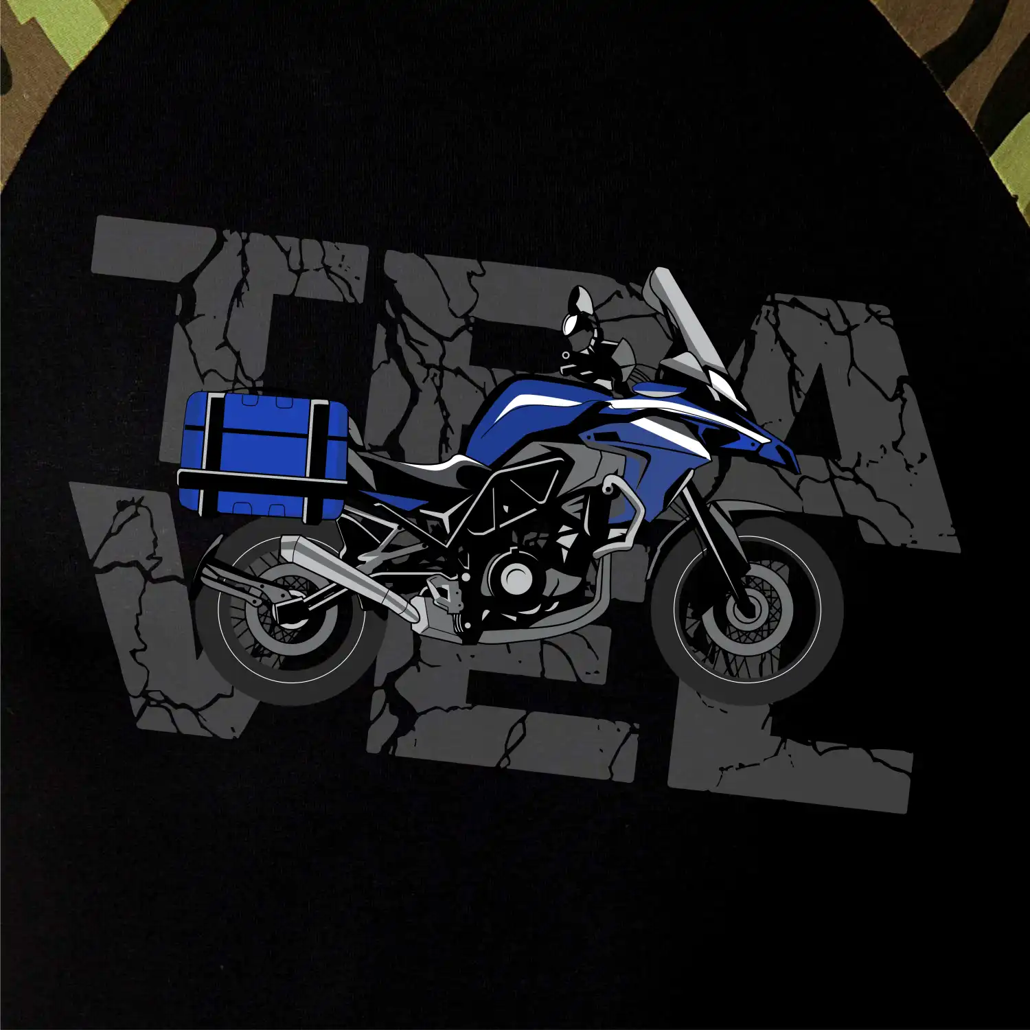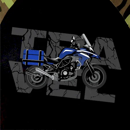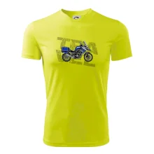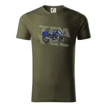 Triko pro motorkáře, na kterém je modrá cestovní enduro motorka. Motorkářské triko, kde je cestovní motorka, musí mít doma každý vášnivý motorkář. Triko s motorkou je vhodný dárek pro motorkáře.