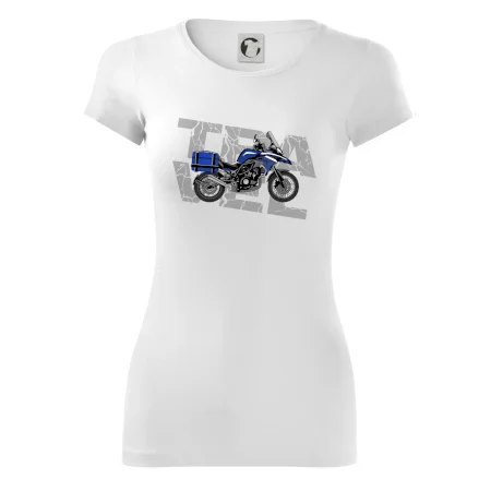 Triko pro motorkáře, na kterém je modrá cestovní enduro motorka. Motorkářské triko, kde je cestovní motorka, musí mít doma každý vášnivý motorkář. Triko s motorkou je vhodný dárek pro motorkáře.