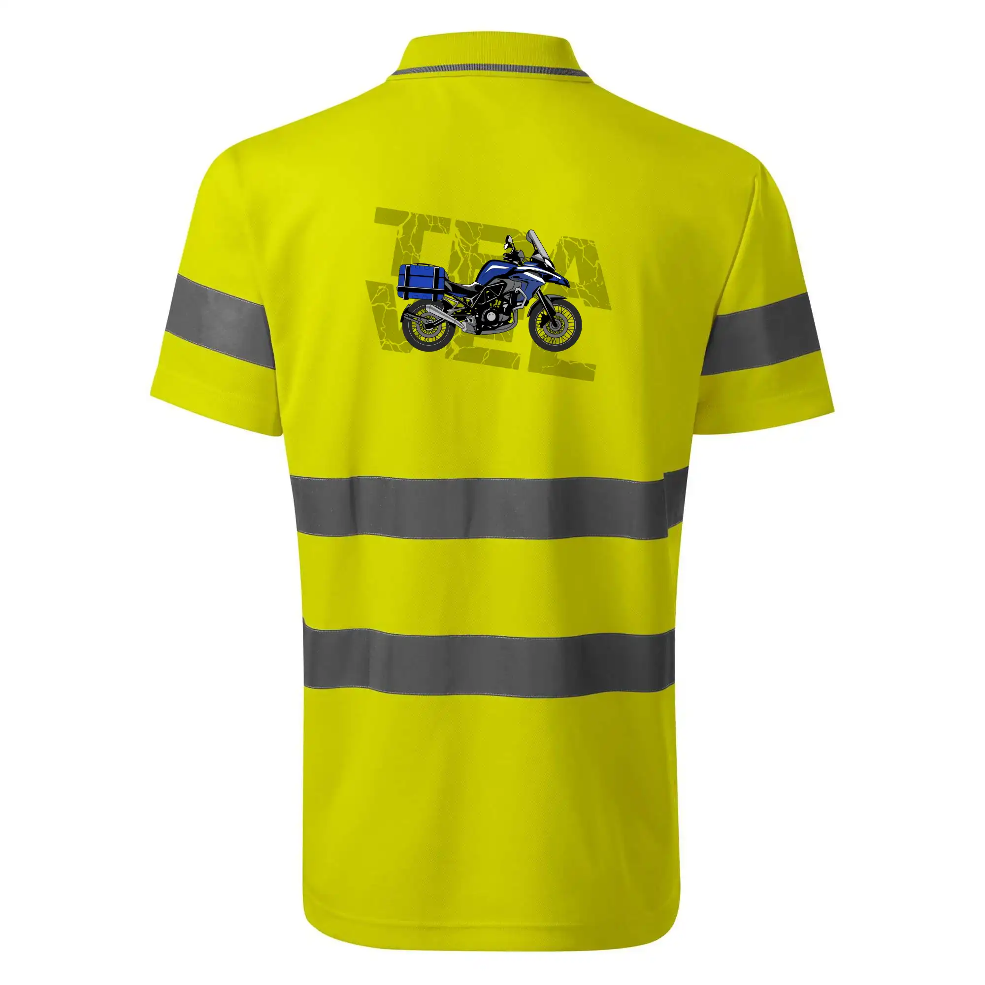 Triko pro motorkáře, na kterém je modrá cestovní enduro motorka. Motorkářské triko, kde je cestovní motorka, musí mít doma každý vášnivý motorkář. Triko s motorkou je vhodný dárek pro motorkáře.