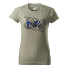Triko pro motorkáře, na kterém je modrá cestovní enduro motorka. Motorkářské triko, kde je cestovní motorka, musí mít doma každý vášnivý motorkář. Triko s motorkou je vhodný dárek pro motorkáře.