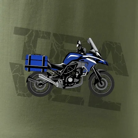 Triko pro motorkáře, na kterém je modrá cestovní enduro motorka. Motorkářské triko, kde je cestovní motorka, musí mít doma každý vášnivý motorkář. Triko s motorkou je vhodný dárek pro motorkáře.