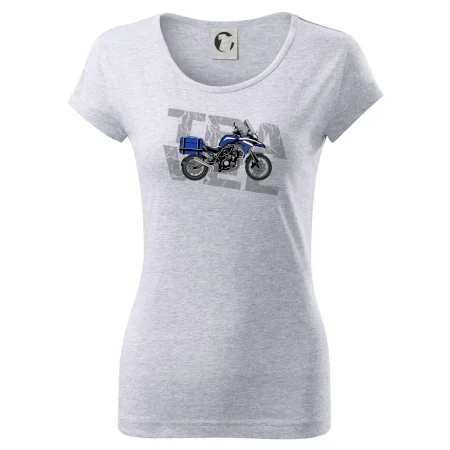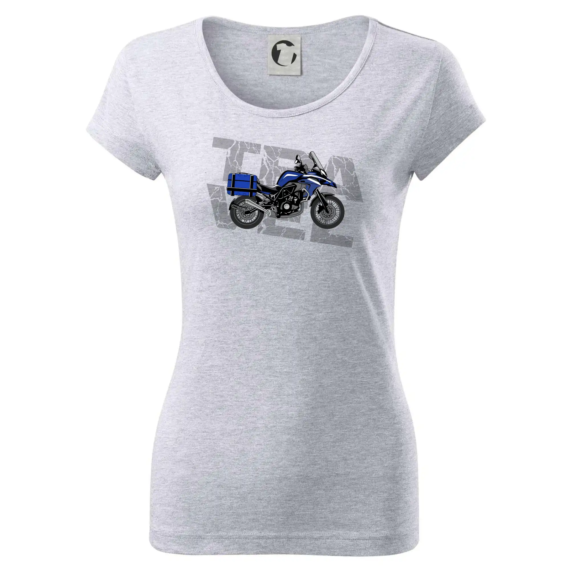 Triko pro motorkáře, na kterém je modrá cestovní enduro motorka. Motorkářské triko, kde je cestovní motorka, musí mít doma každý vášnivý motorkář. Triko s motorkou je vhodný dárek pro motorkáře.