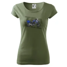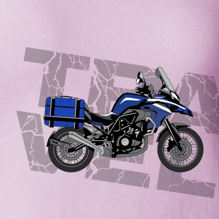 Triko pro motorkáře, na kterém je modrá cestovní enduro motorka. Motorkářské triko, kde je cestovní motorka, musí mít doma každý vášnivý motorkář. Triko s motorkou je vhodný dárek pro motorkáře.