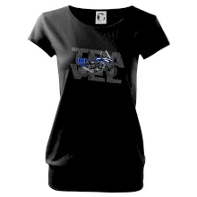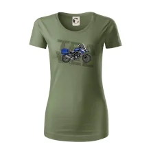 Triko pro motorkáře, na kterém je modrá cestovní enduro motorka. Motorkářské triko, kde je cestovní motorka, musí mít doma každý vášnivý motorkář. Triko s motorkou je vhodný dárek pro motorkáře.