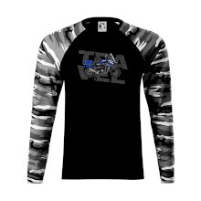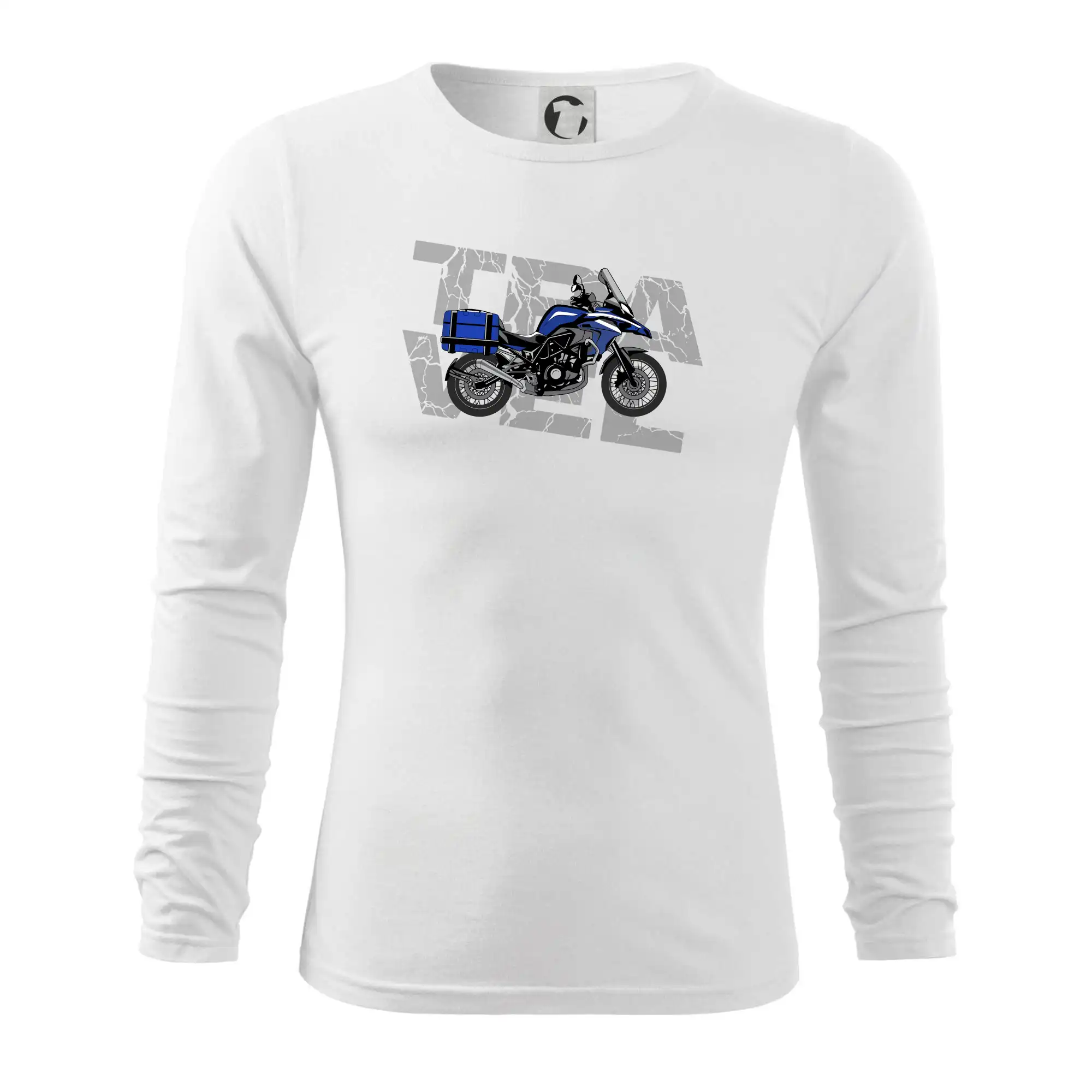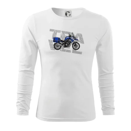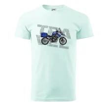 Triko pro motorkáře, na kterém je modrá cestovní enduro motorka. Motorkářské triko, kde je cestovní motorka, musí mít doma každý vášnivý motorkář. Triko s motorkou je vhodný dárek pro motorkáře.