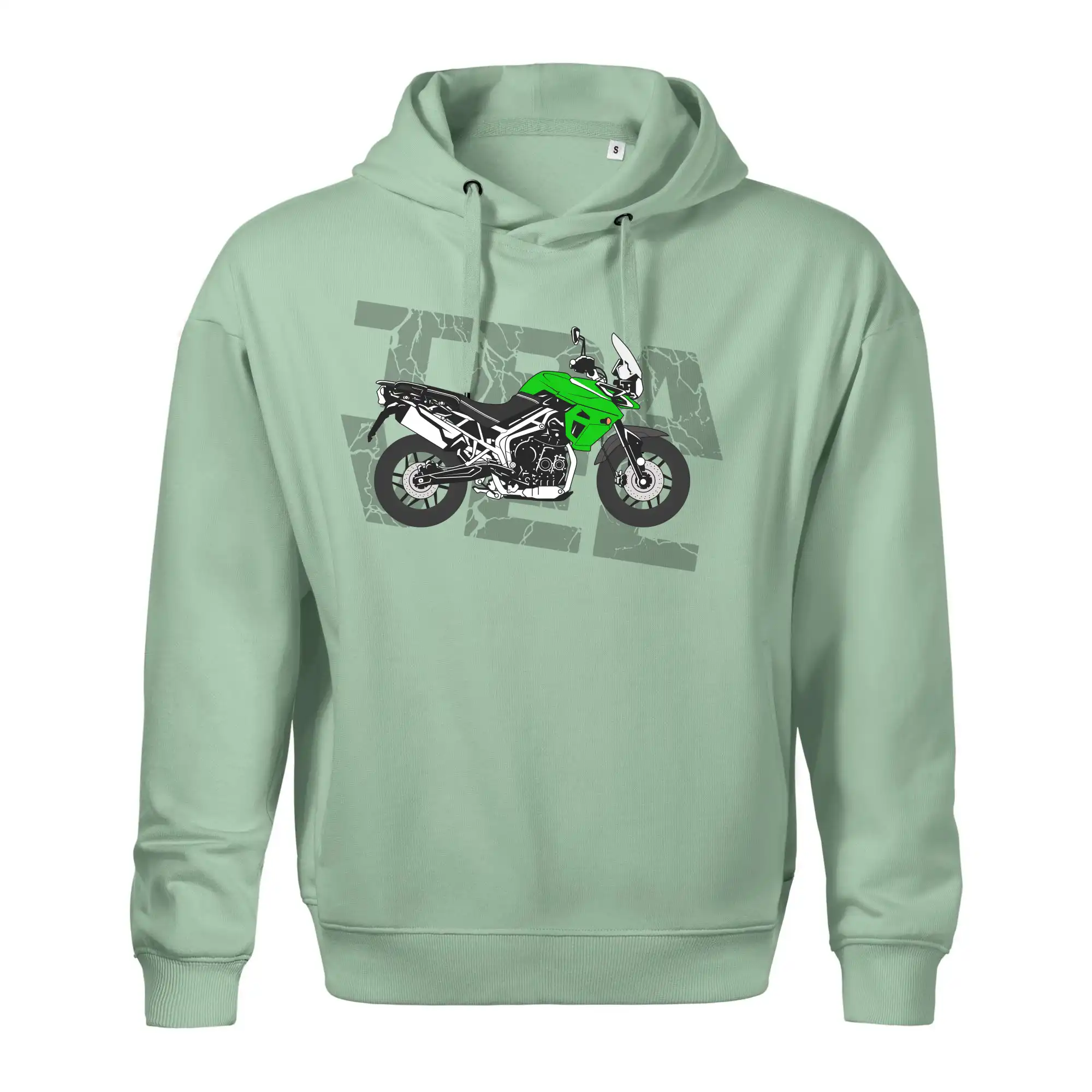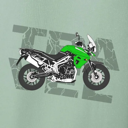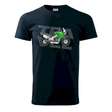 Triko pro motorkáře, na kterém je zelená cestovní enduro motorka. Motorkářské triko, kde je cestovní motorka, musí mít doma každý vášnivý motorkář. Triko s motorkou je vhodný dárek pro motorkáře.