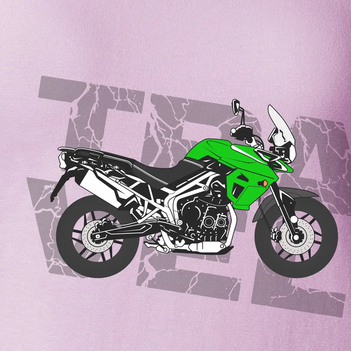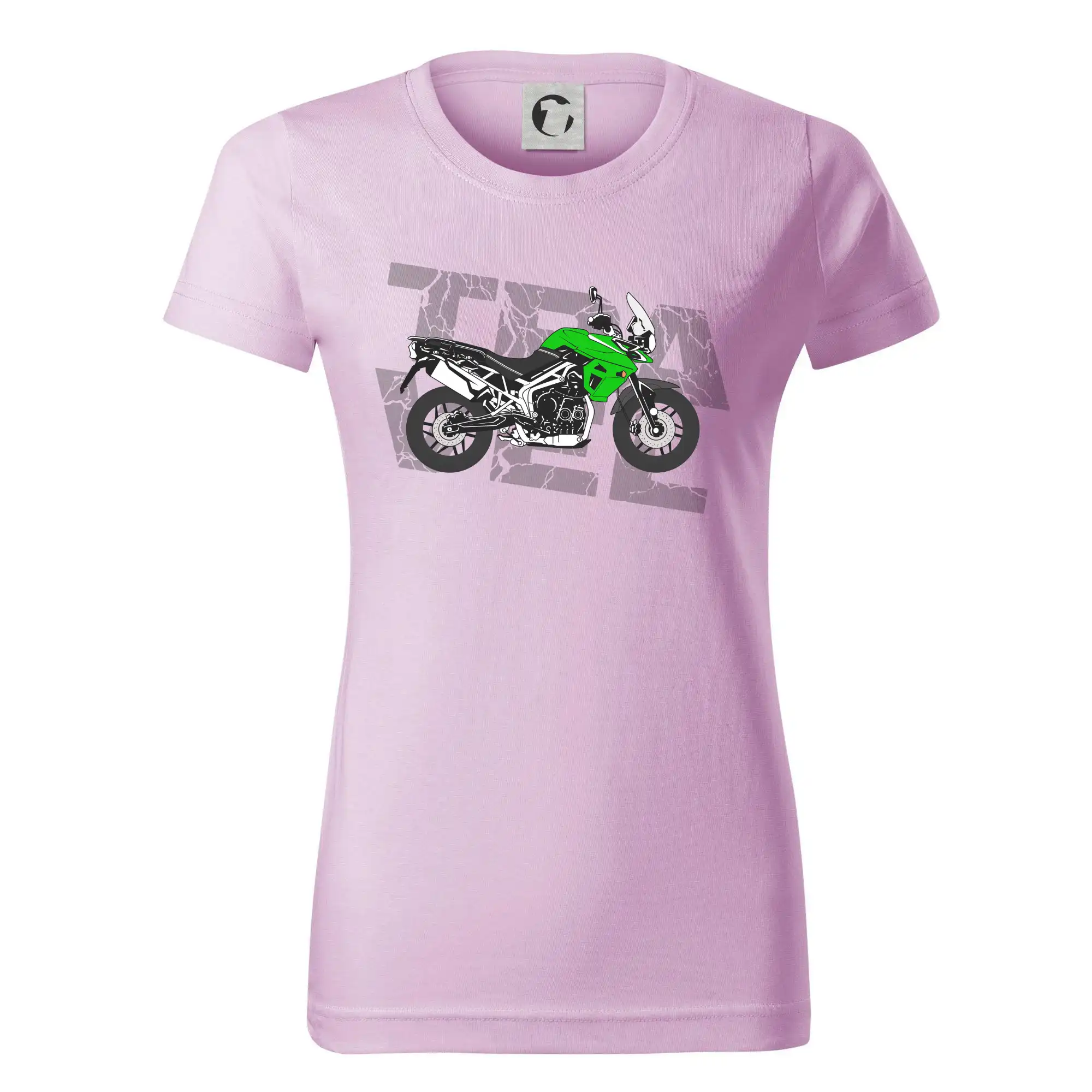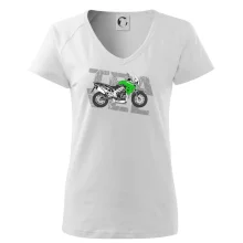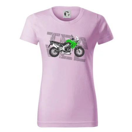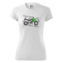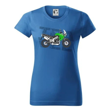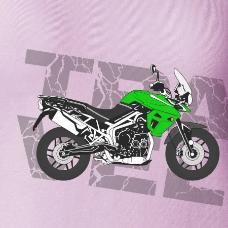 Triko pro motorkáře, na kterém je zelená cestovní enduro motorka. Motorkářské triko, kde je cestovní motorka, musí mít doma každý vášnivý motorkář. Triko s motorkou je vhodný dárek pro motorkáře.