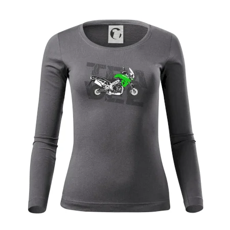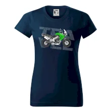 Triko pro motorkáře, na kterém je zelená cestovní enduro motorka. Motorkářské triko, kde je cestovní motorka, musí mít doma každý vášnivý motorkář. Triko s motorkou je vhodný dárek pro motorkáře.