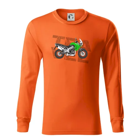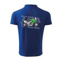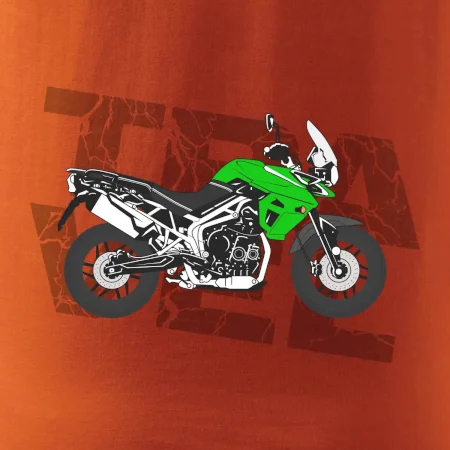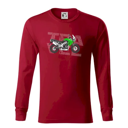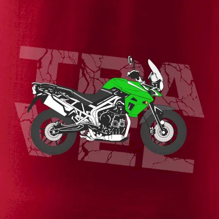 Triko pro motorkáře, na kterém je zelená cestovní enduro motorka. Motorkářské triko, kde je cestovní motorka, musí mít doma každý vášnivý motorkář. Triko s motorkou je vhodný dárek pro motorkáře.