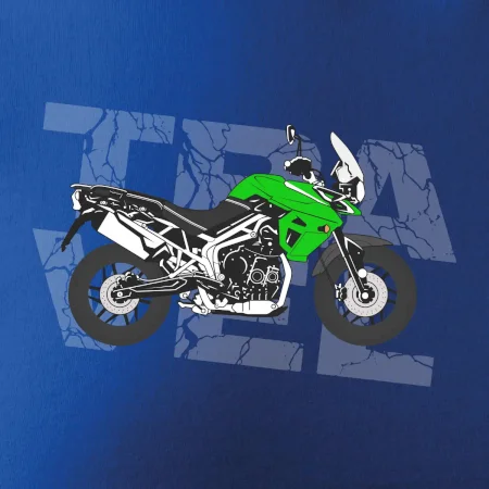 Triko pro motorkáře, na kterém je zelená cestovní enduro motorka. Motorkářské triko, kde je cestovní motorka, musí mít doma každý vášnivý motorkář. Triko s motorkou je vhodný dárek pro motorkáře.