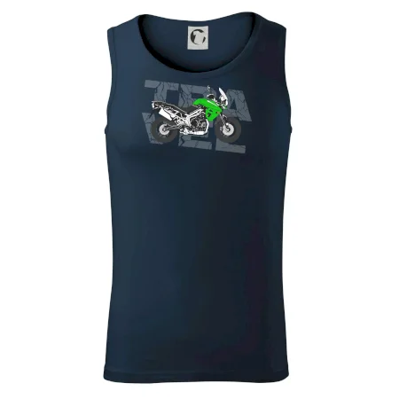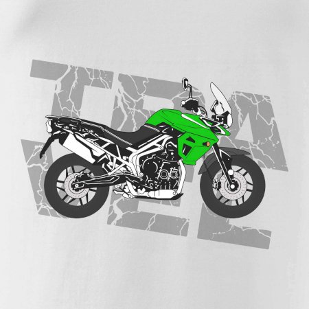 Triko pro motorkáře, na kterém je zelená cestovní enduro motorka. Motorkářské triko, kde je cestovní motorka, musí mít doma každý vášnivý motorkář. Triko s motorkou je vhodný dárek pro motorkáře.