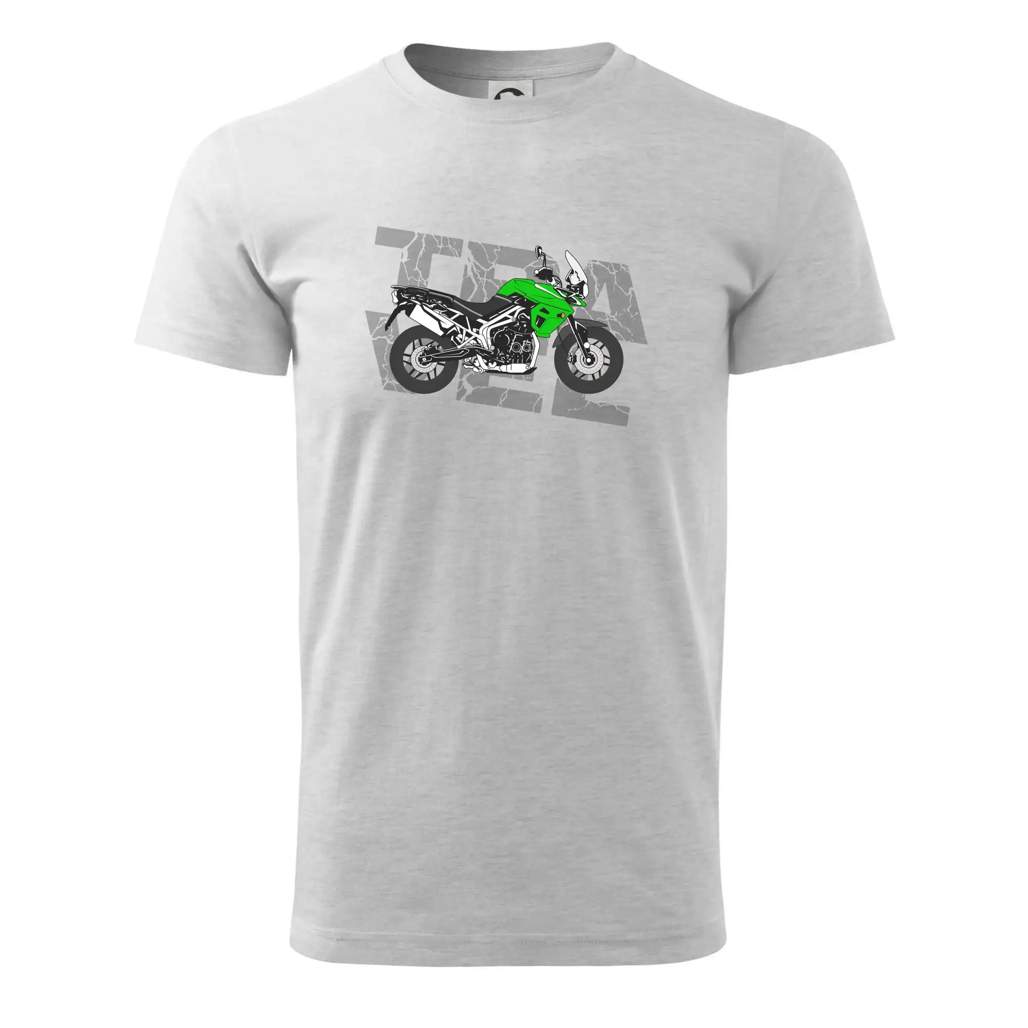 Triko pro motorkáře, na kterém je zelená cestovní enduro motorka. Motorkářské triko, kde je cestovní motorka, musí mít doma každý vášnivý motorkář. Triko s motorkou je vhodný dárek pro motorkáře.