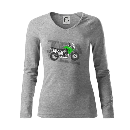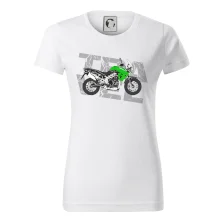 Triko pro motorkáře, na kterém je zelená cestovní enduro motorka. Motorkářské triko, kde je cestovní motorka, musí mít doma každý vášnivý motorkář. Triko s motorkou je vhodný dárek pro motorkáře.