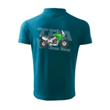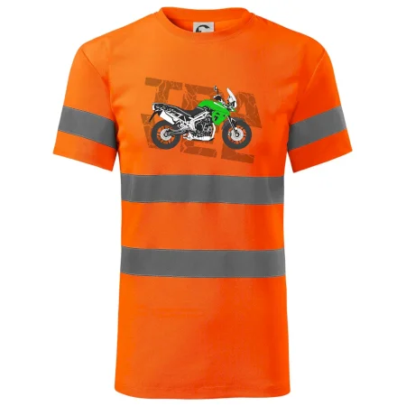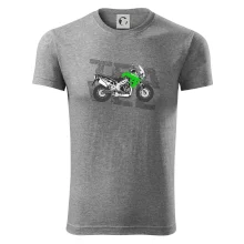 Triko pro motorkáře, na kterém je zelená cestovní enduro motorka. Motorkářské triko, kde je cestovní motorka, musí mít doma každý vášnivý motorkář. Triko s motorkou je vhodný dárek pro motorkáře.