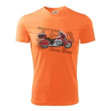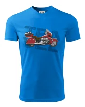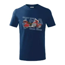 Triko pro motorkáře, na kterém je červená cestovní motorka Amerika. Motorkářské triko, kde je cestovní motorka, musí mít doma každý vášnivý motorkář. Triko s motorkou je vhodný dárek pro motorkáře.