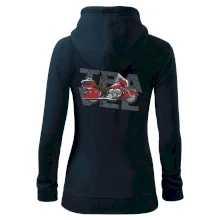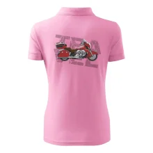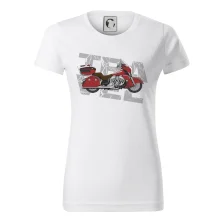Triko pro motorkáře, na kterém je červená cestovní motorka Amerika. Motorkářské triko, kde je cestovní motorka, musí mít doma každý vášnivý motorkář. Triko s motorkou je vhodný dárek pro motorkáře.