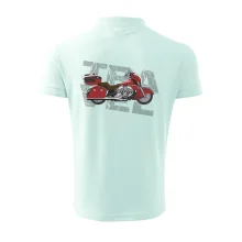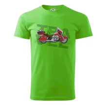 Triko pro motorkáře, na kterém je červená cestovní motorka Amerika. Motorkářské triko, kde je cestovní motorka, musí mít doma každý vášnivý motorkář. Triko s motorkou je vhodný dárek pro motorkáře.