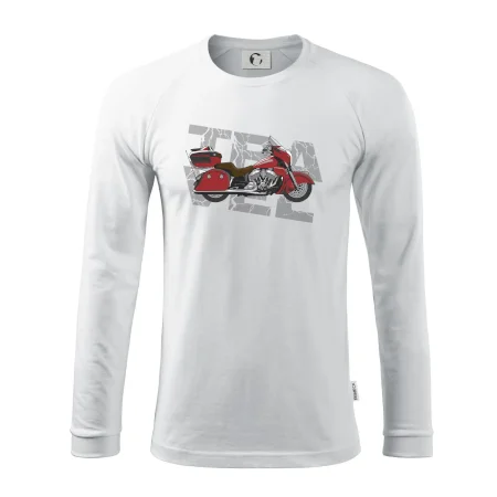 Triko pro motorkáře, na kterém je červená cestovní motorka Amerika. Motorkářské triko, kde je cestovní motorka, musí mít doma každý vášnivý motorkář. Triko s motorkou je vhodný dárek pro motorkáře.