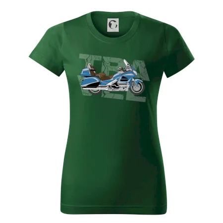 Triko pro motorkáře, na kterém je modrá cestovní motorka Amerika. Motorkářské triko, kde je cestovní motorka, musí mít doma každý vášnivý motorkář. Triko s motorkou je vhodný dárek pro motorkáře.