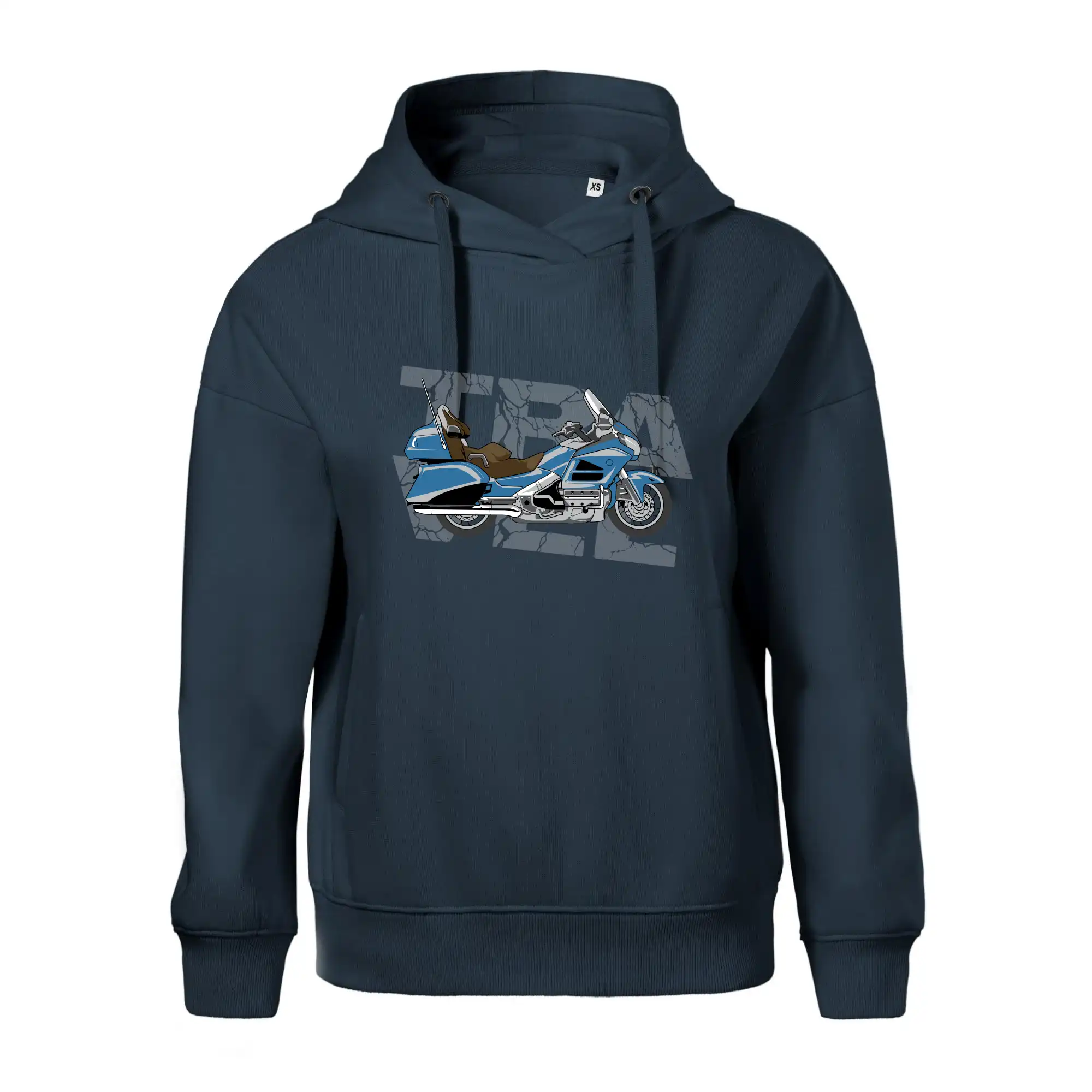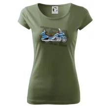 Triko pro motorkáře, na kterém je modrá cestovní motorka Amerika. Motorkářské triko, kde je cestovní motorka, musí mít doma každý vášnivý motorkář. Triko s motorkou je vhodný dárek pro motorkáře.