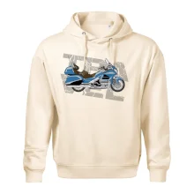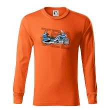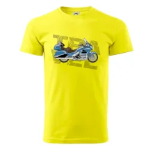 Triko pro motorkáře, na kterém je modrá cestovní motorka Amerika. Motorkářské triko, kde je cestovní motorka, musí mít doma každý vášnivý motorkář. Triko s motorkou je vhodný dárek pro motorkáře.