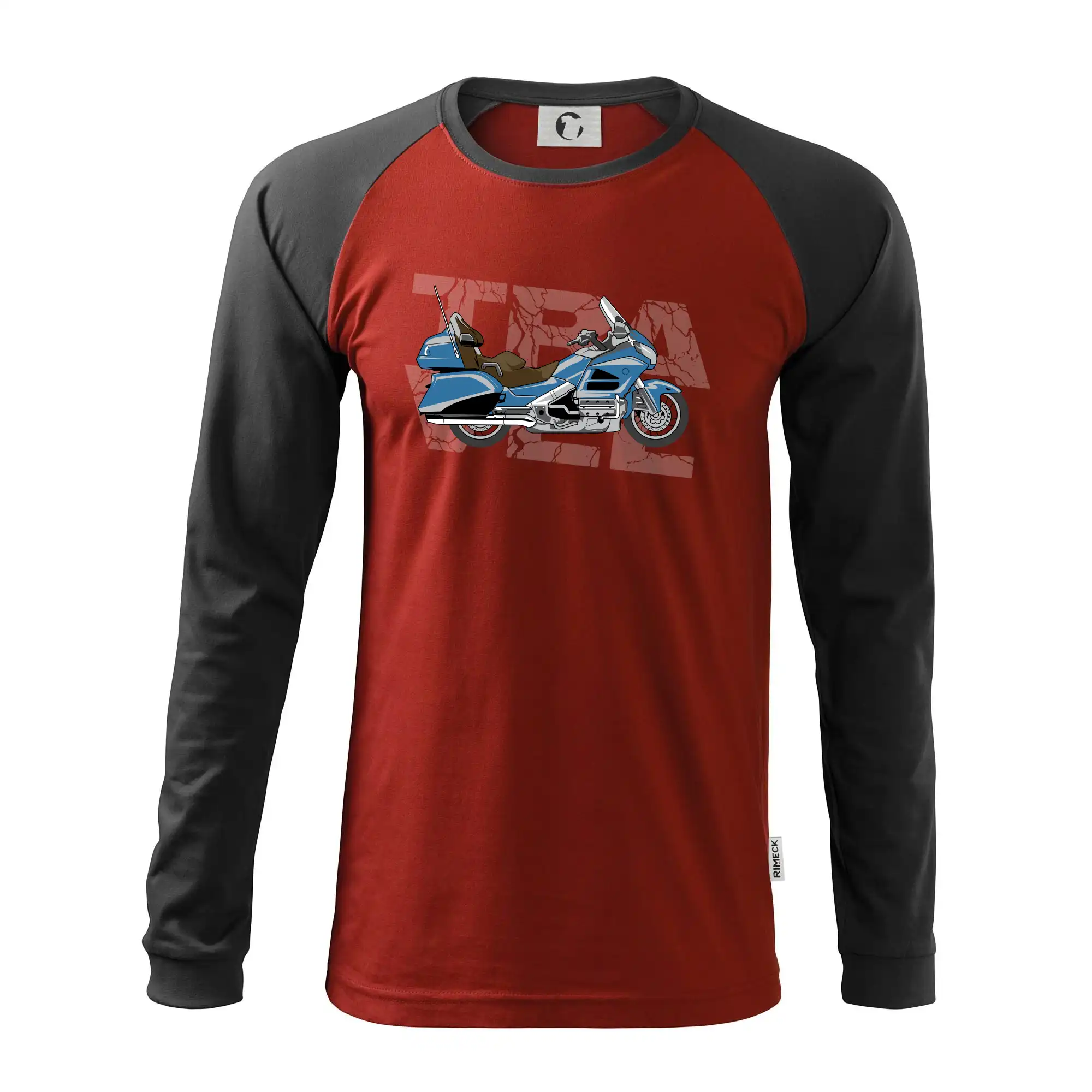 Triko pro motorkáře, na kterém je modrá cestovní motorka Amerika. Motorkářské triko, kde je cestovní motorka, musí mít doma každý vášnivý motorkář. Triko s motorkou je vhodný dárek pro motorkáře.
