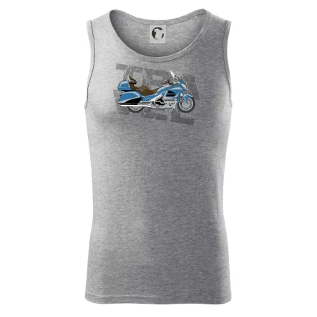 Triko pro motorkáře, na kterém je modrá cestovní motorka Amerika. Motorkářské triko, kde je cestovní motorka, musí mít doma každý vášnivý motorkář. Triko s motorkou je vhodný dárek pro motorkáře.