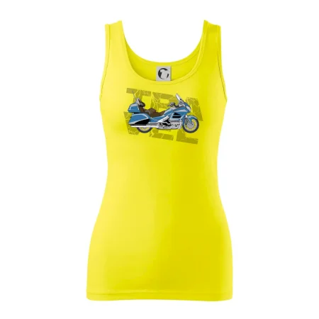 Triko pro motorkáře, na kterém je modrá cestovní motorka Amerika. Motorkářské triko, kde je cestovní motorka, musí mít doma každý vášnivý motorkář. Triko s motorkou je vhodný dárek pro motorkáře.