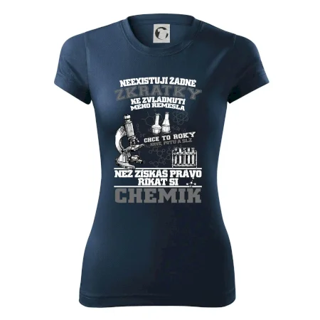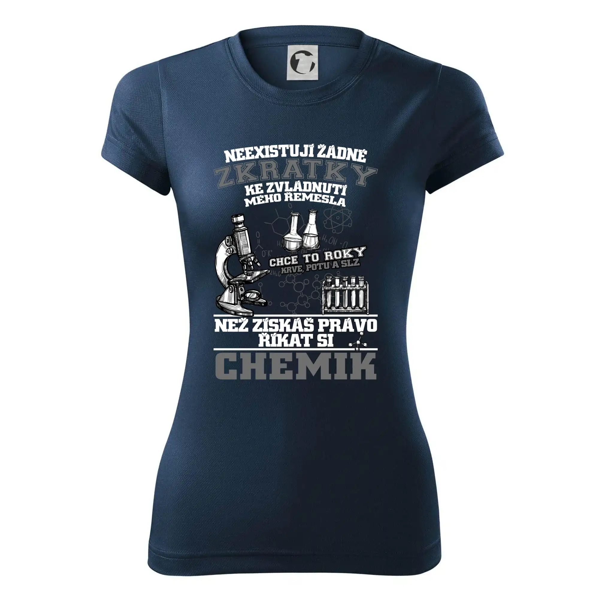 Skvělý dárek pro chemika, triko s chemickými přístroji na tričku. Dárek pro učitele chemie s chemickými baňkami na tričku.
