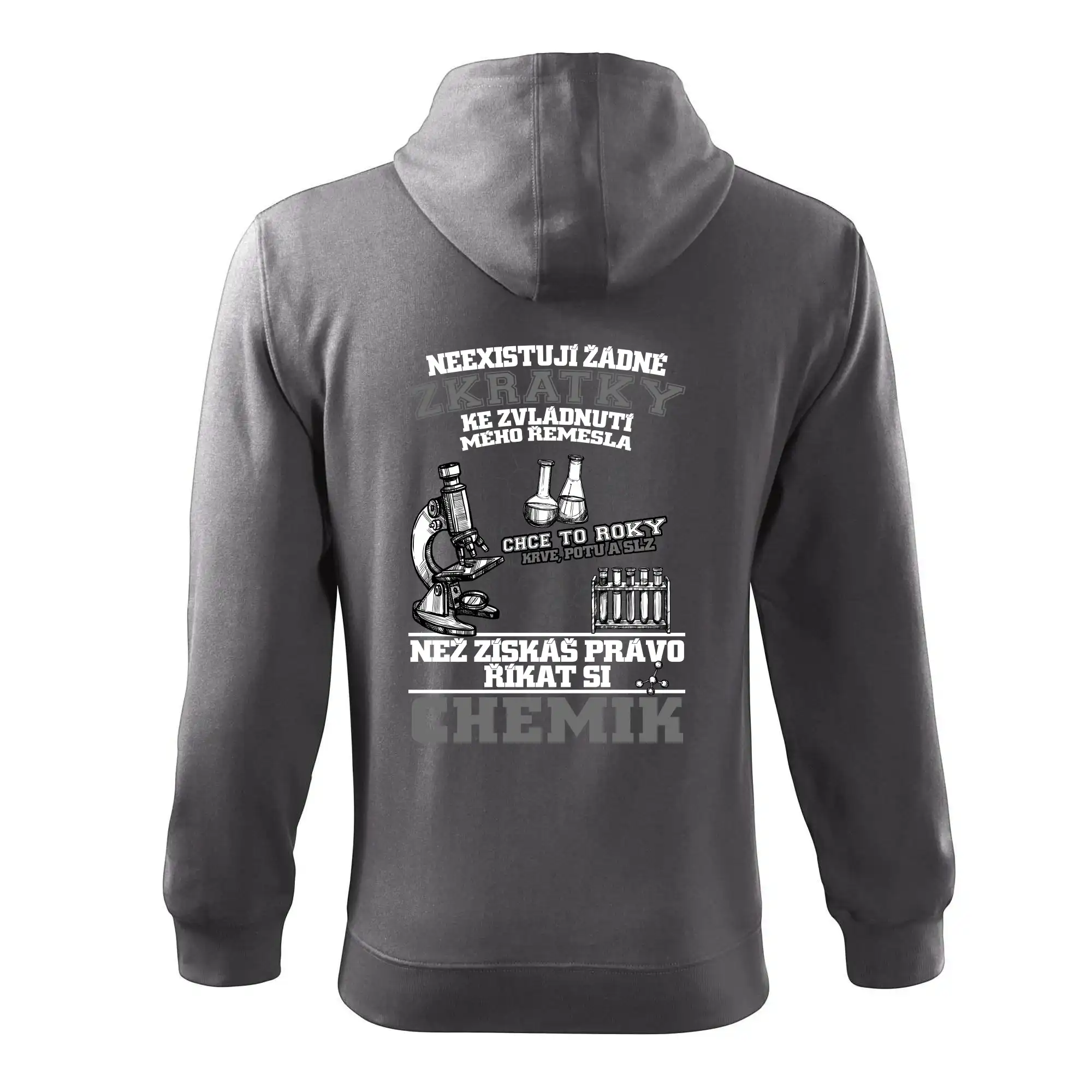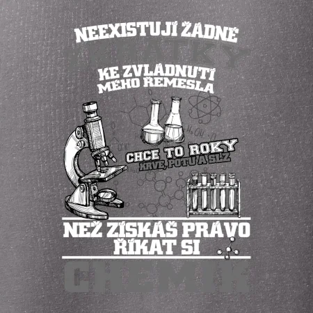 Skvělý dárek pro chemika, triko s chemickými přístroji na tričku. Dárek pro učitele chemie s chemickými baňkami na tričku.