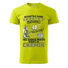 Skvělý dárek pro chemika, triko s chemickými přístroji na tričku. Dárek pro učitele chemie s chemickými baňkami na tričku.