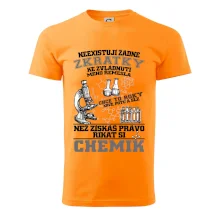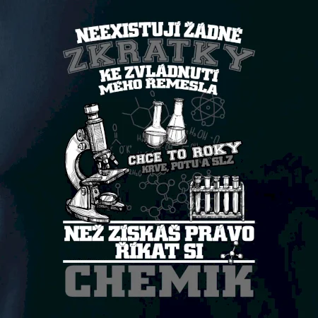 Skvělý dárek pro chemika, triko s chemickými přístroji na tričku. Dárek pro učitele chemie s chemickými baňkami na tričku.
