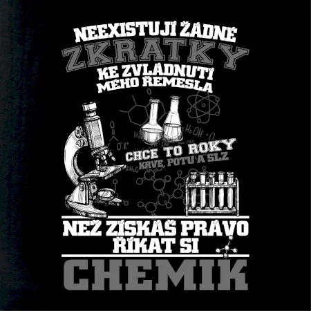Skvělý dárek pro chemika, triko s chemickými přístroji na tričku. Dárek pro učitele chemie s chemickými baňkami na tričku.