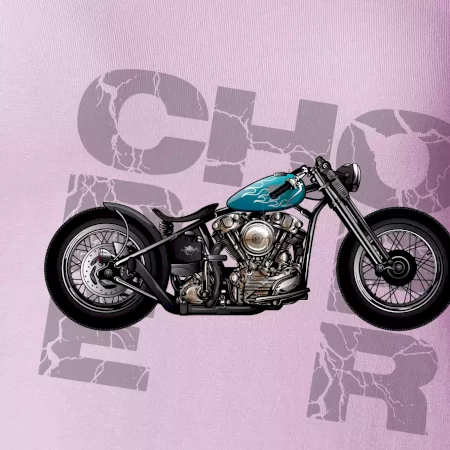 Triko pro motorkáře, na kterém je modrá motorka chopper. Motocykl by měl mít na triku každý správný motorkář. Moto triko s motorkou je vhodný dárek pro motorkáře.