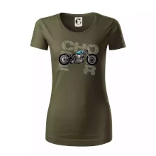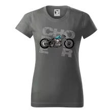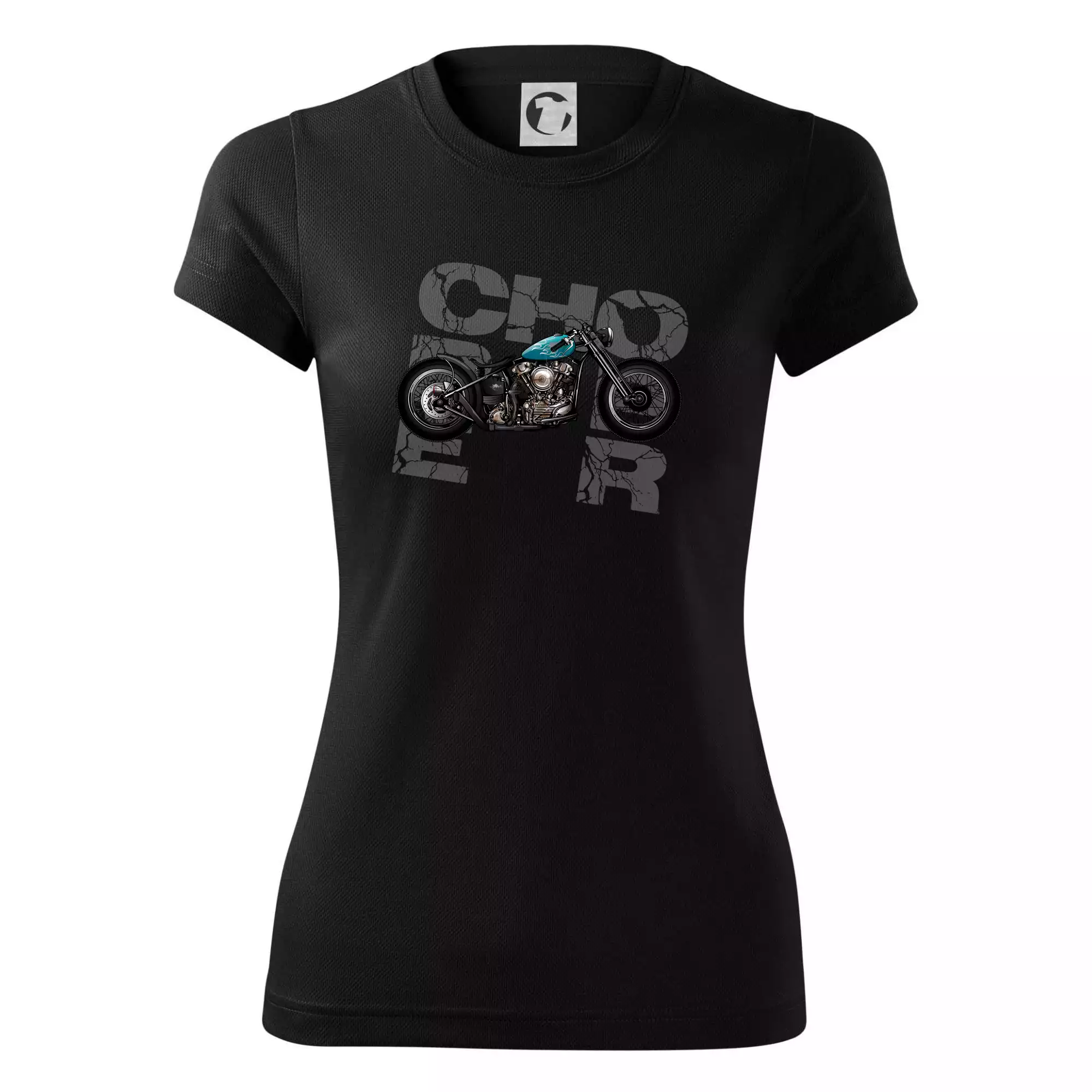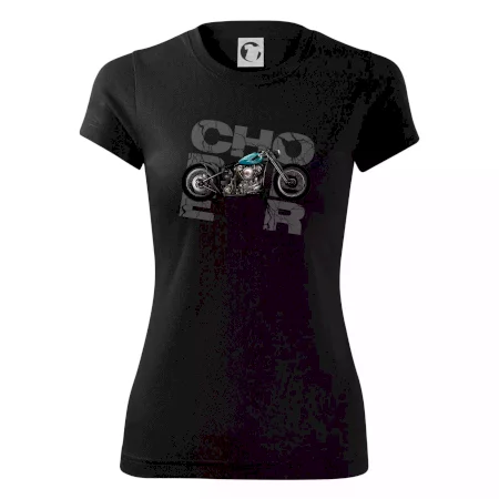 Triko pro motorkáře, na kterém je modrá motorka chopper. Motocykl by měl mít na triku každý správný motorkář. Moto triko s motorkou je vhodný dárek pro motorkáře.